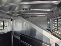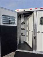 Brand New 2026 Elite Three Horse Mustang 7' Tall x 7' Wide x 18' Floor Head and Butt Drop Down Windows Aluminum Wheels Matching Spare Rear Ramp Load Light Stall Pads Stud Wall Escape Door Rear Tack Stainless Nose Great Dressing Room with Turf Clothes Rod Brush Box Additional Location for Saddle Rack Aluminum Construction